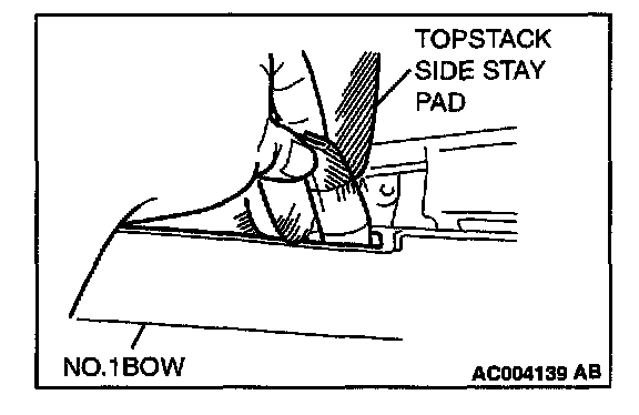 3. Pull out the folded end of the topstack side stay, and disconnect the topstack side stay pad from the No.1 bow.