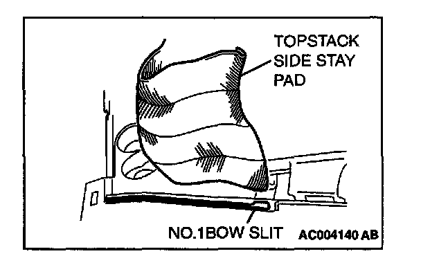 2. Guide the (folded) end of the topstack side stay pad out of the wider slit of the No.1 bow.