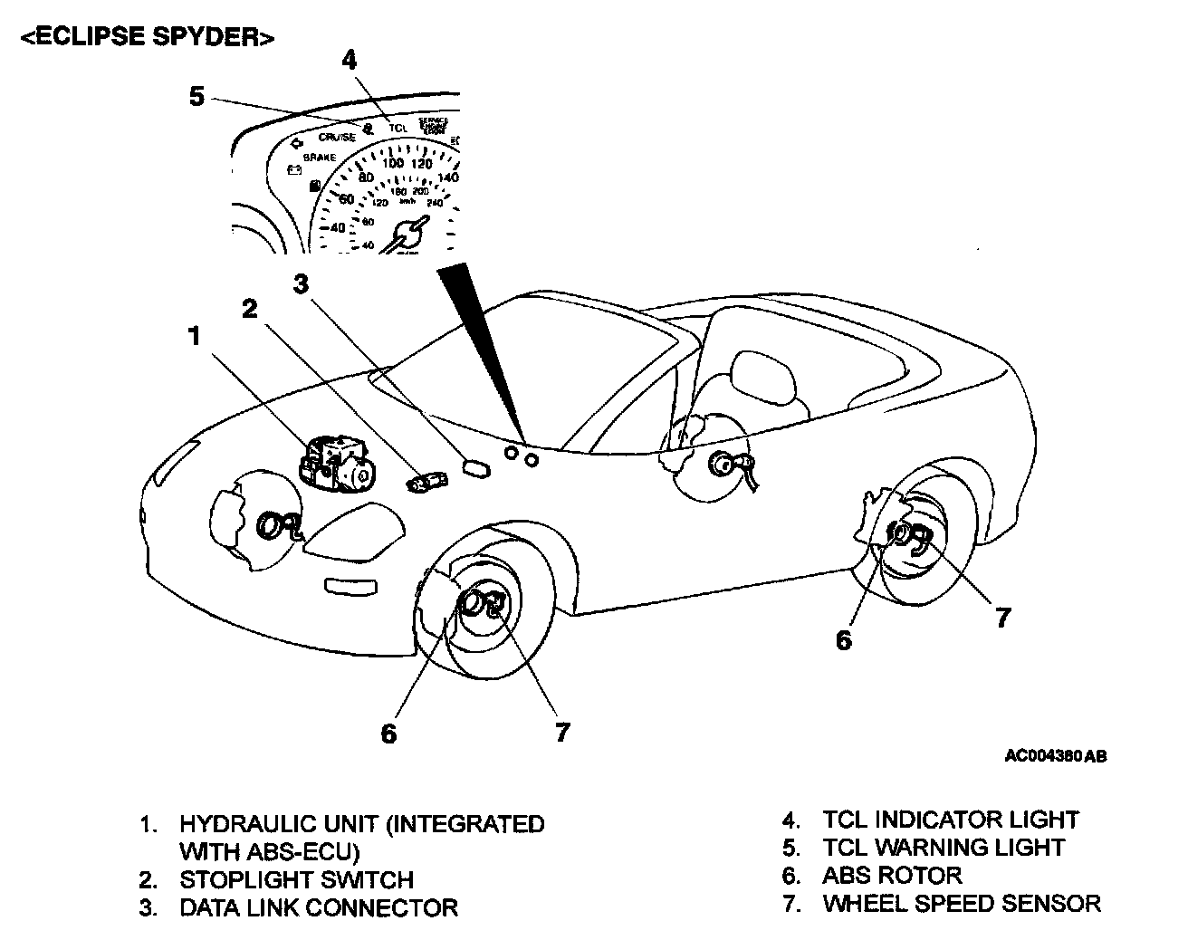 ABS-ECU determines which wheel begins to slip according to that signal. If the ABS-ECU determines wheel slip, it activates the solenoid valves and the pump inside the hydraulic unit to prevent the wheel slip by applying brake ensuring controllability. This TCL system is controlled by the ABS-ECU, and the TCL components are shared by the ABS system. If the ABS hydraulic unit is faulty, the ABS-ECU must be replaced.