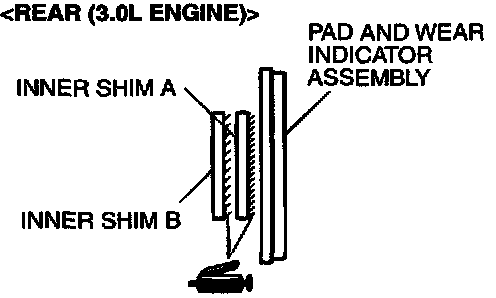 7. For front disc brake <2.4L ENGINE> and rear disc bake <3.0L ENGINE>, apply brake grease SAE J310, NLGI number 1 to the following positions before installing the pad.