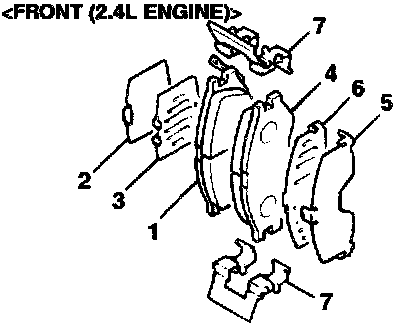 ^ Whenever a pad must be replaced, replace both LH and RH wheel pads as a set to prevent the vehicle from pulling to one side when braking.