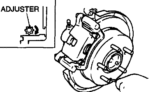 Remove the adjustment hole plug, and then use a flat-tip screwdriver to turn the adjuster in the direction of the arrow (the direction which expands the shoe) so that the disc will not rotate. Return the adjuster five notches in the direction opposite to the direction of the arrow.