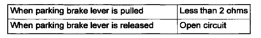 Check for continuity between the parking brake switch terminal and the switch mounting bolt.