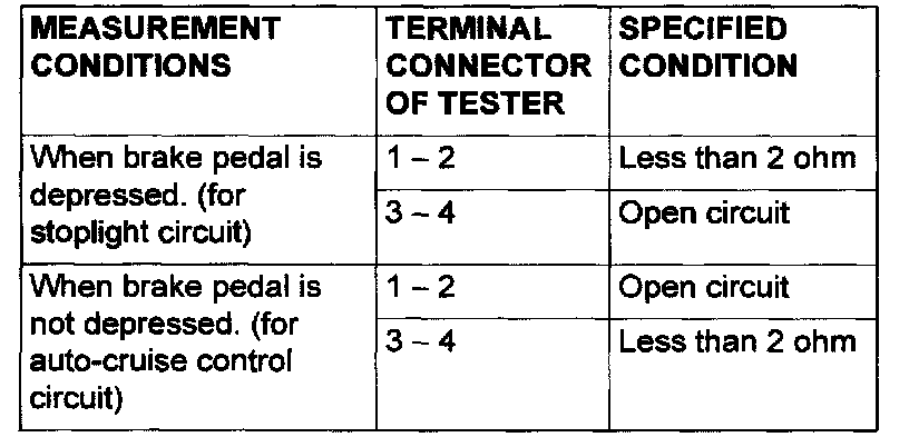 Brake Switch (Cruise Control): Testing and Inspection
