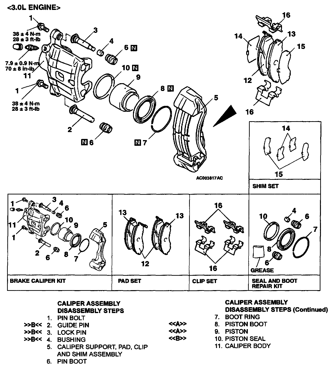 FRONT DISC BRAKE ASSEMBLY OVERHAUL W/ RELATED COMPONENTS
