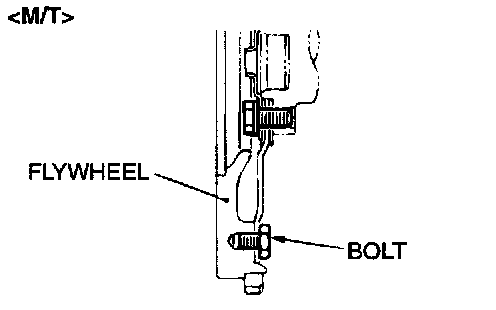 CAUTION: Do not remove the flywheel mounting bolt shown by the arrow. If this bolt is removed, the flywheel will become out of balance and damaged.