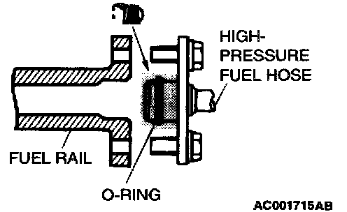 3. If the hose does not turn smoothly, the O-ring may be clamped. Disconnect the high-pressure fuel hose and check the O-ring for damage.