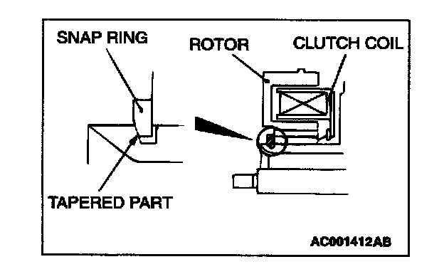Install the snap ring so that the tapered surface is to the outside.
