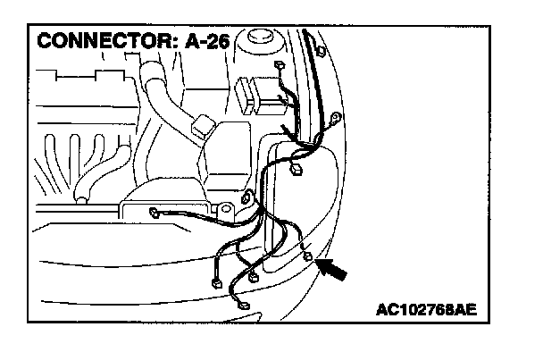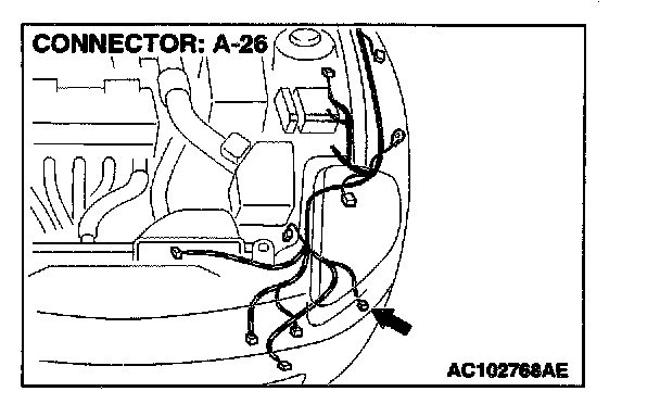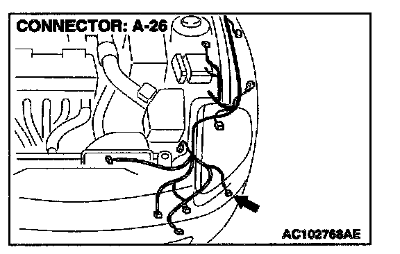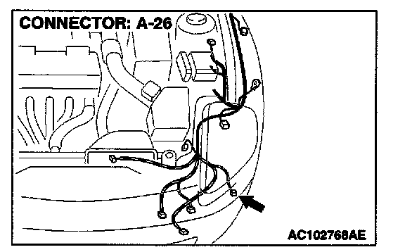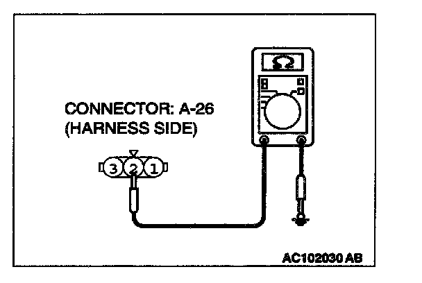 STEP 13. Measure at front combination light (LH) connector A-26 in order to check the ground circuit to the position light (LH).