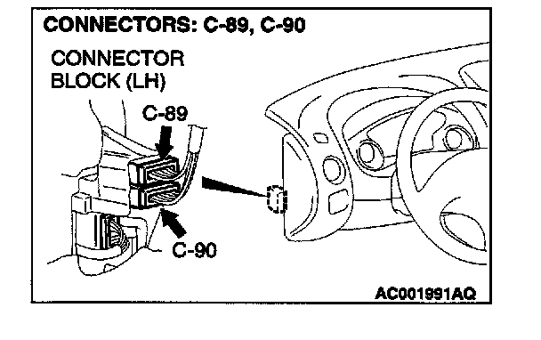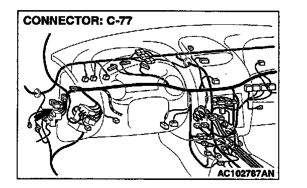 NOTE: Also check joint connector C-77 and intermediate connector C-89. If joint connector C-77 or intermediate connector C-89 is damaged, repair or replace the connector as described in Harness connector Inspection.