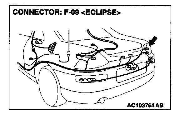 STEP 11. Check the wiring harness between rear combination light (RH) connector F-09 and front-ECU connector A-10X.