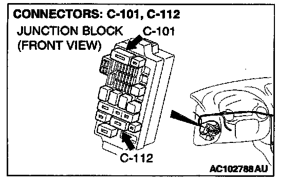 NOTE: Also check junction block connectors C-101 and C-112 and intermediate connector C-89. If junction block connectors C-101 or C-112 or intermediate connector C-89 is damaged, repair or replace the connector as described in Harness connector Inspection.