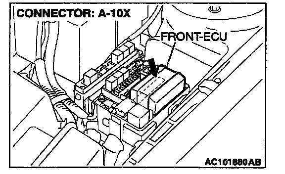STEP 3. Check the wiring harness between front combination light (LH) connector A-26 and front-ECU connector A-10X.