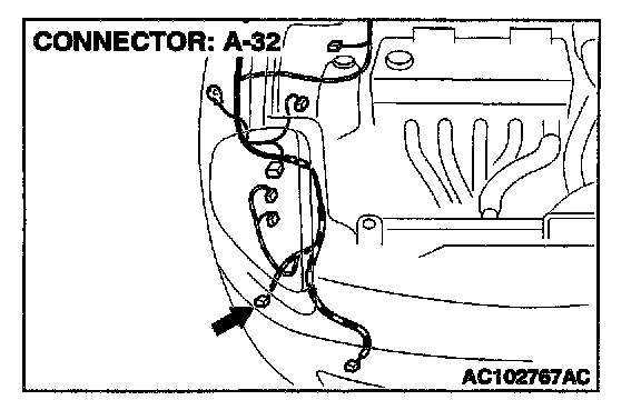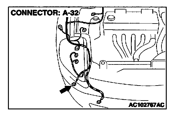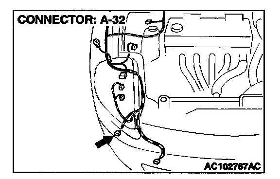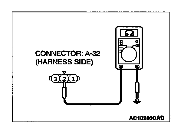 STEP 19. Measure at position light (RH) connector A-32 in order to check the ground circuit to the position light (RH).