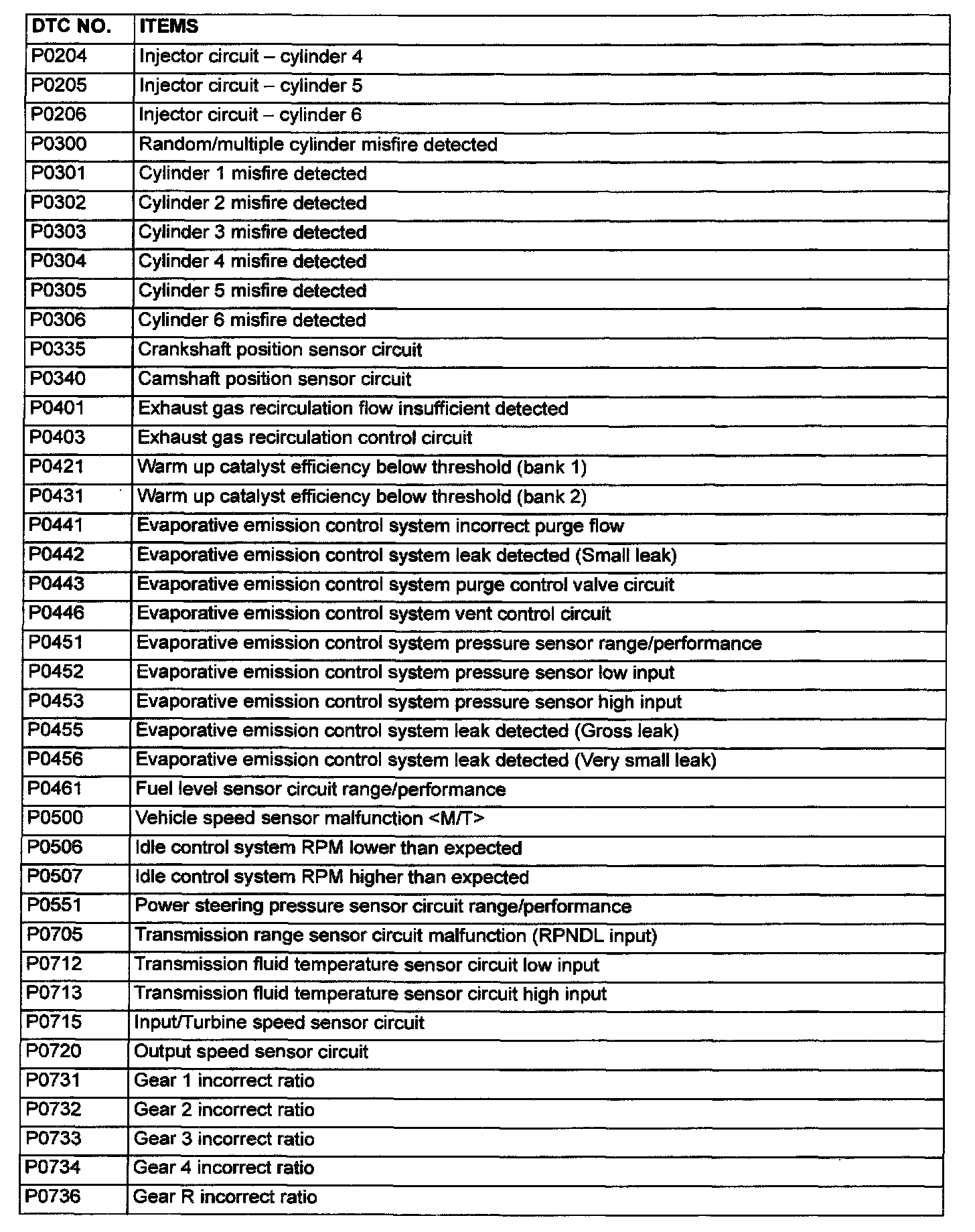 Among the on-board diagnostic items, a Service Engine Soon/Malfunction Indicator Lamp illuminates to notify the driver of an emission control malfunction.