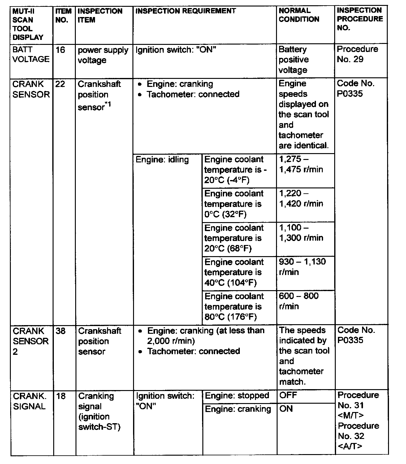 NOTE: *3: The injector drive time represents the time when the cranking speed is at 250 r/min or below when the power supply voltage is 11 volts.