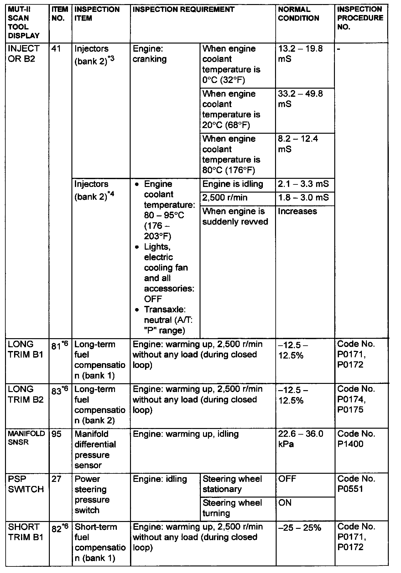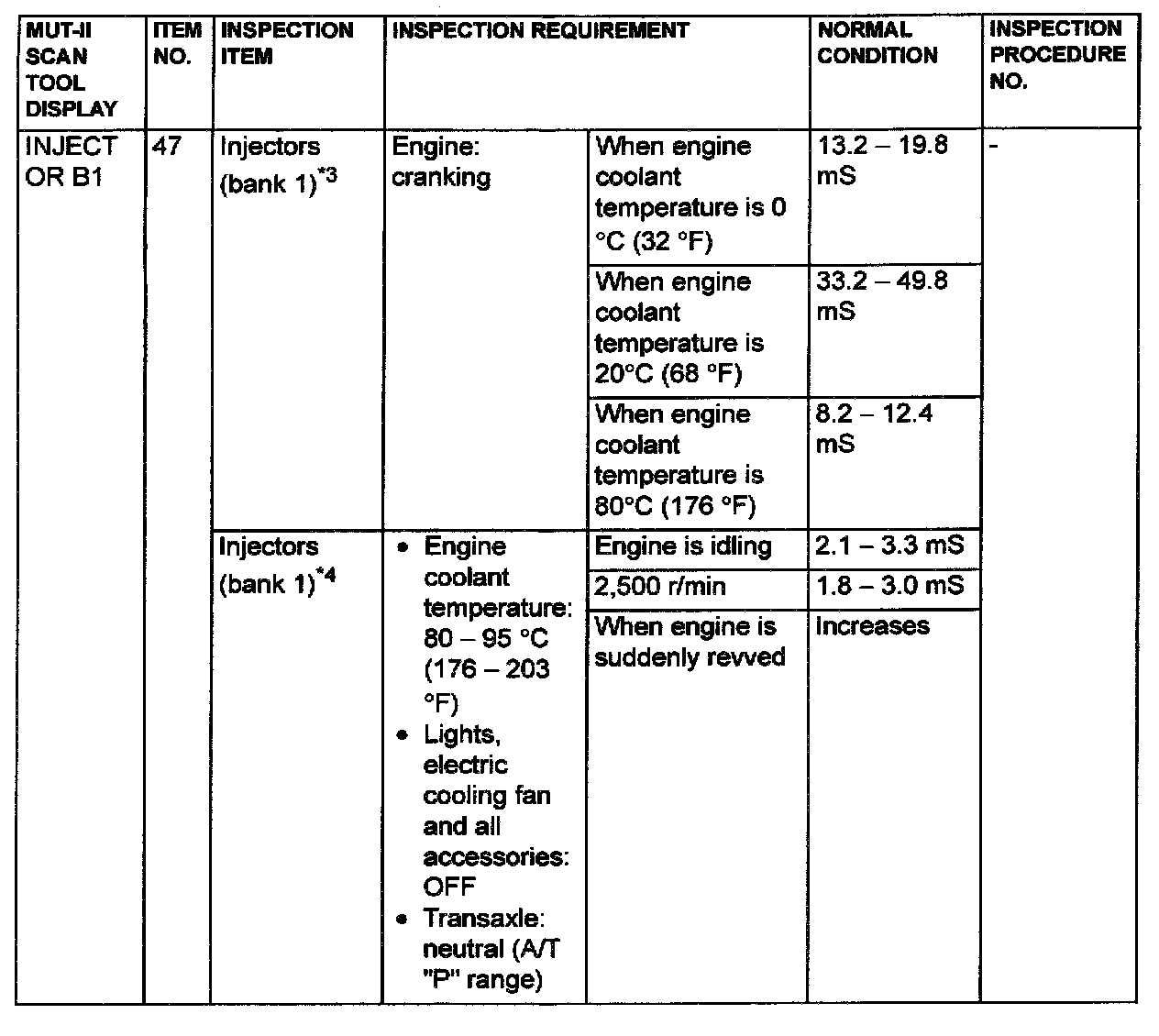 NOTE: *4: In a new vehicle [driven approximately 500 km (311 mile) or less], the injector drive time is sometimes 10% longer than the standard time.