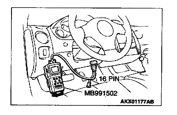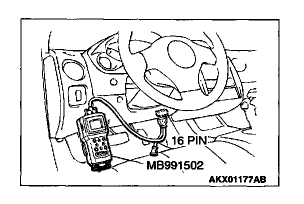 CAUTION: To prevent damage to scan tool MB991502, always turn the ignition switch to the "LOCK" (OFF) position before connecting or disconnecting scan tool MB991502.