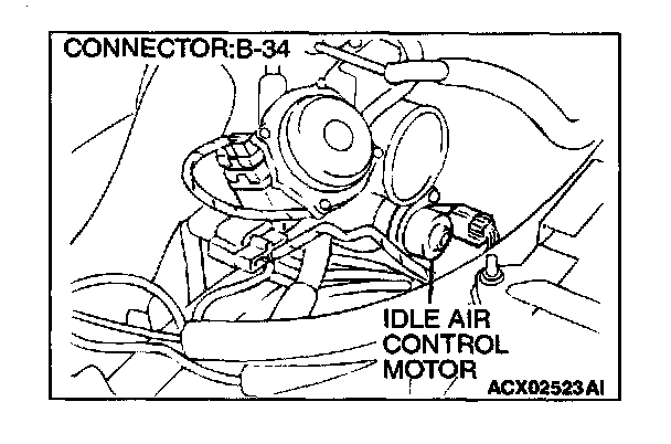 2. Check that the operation sound of the IAC motor can be heard after the ignition is switched to the "ON" position (be without starting the engine).