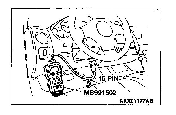 1. Connect scan tool MB991502 to the data link connector.