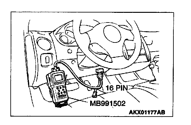 CAUTION: To prevent damage to scan tool MB991502, always turn the ignition switch to the "LOCK" (OFF) position before connecting or disconnecting scan tool MB991502.