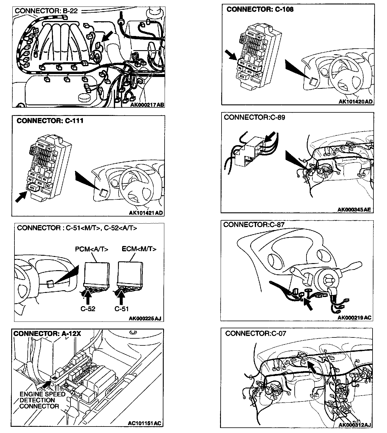 STEP 8. Check for open circuit between distributor connector B-22 terminal 2 and engine speed detection connector A-12X terminal 1.