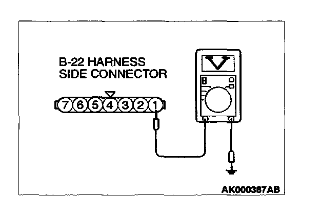 1. Disconnect the connector B-22 and measure at the harness side.