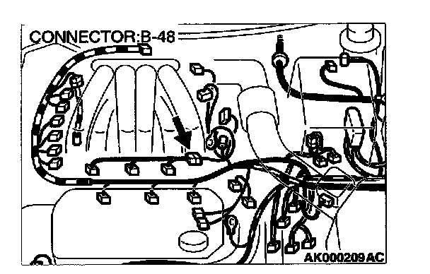 STEP 10. Check connector B-48 at the injector intermediate connector for damage.