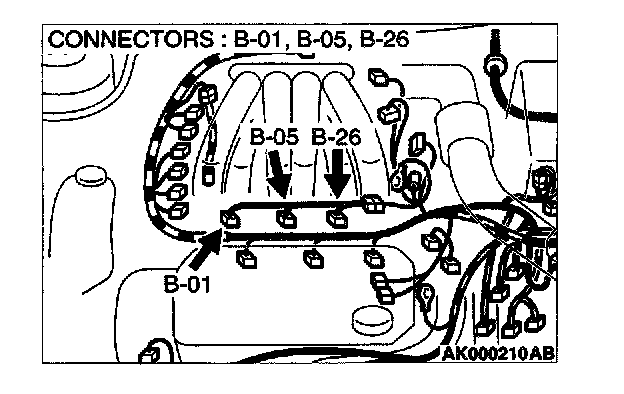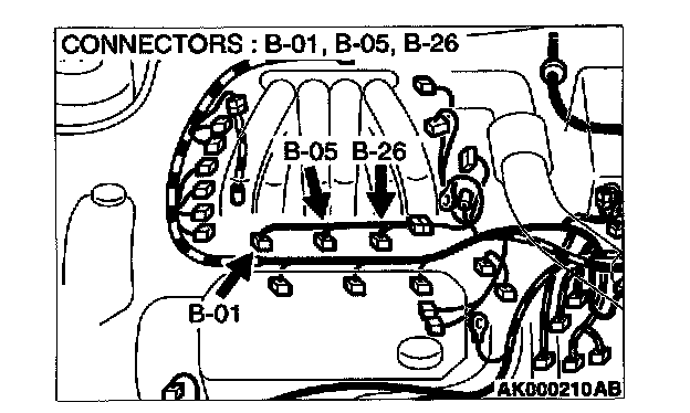 STEP 9. Check connector B-01 or B-05 or B-26 at right bank injector for damage.