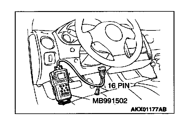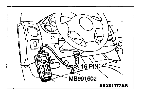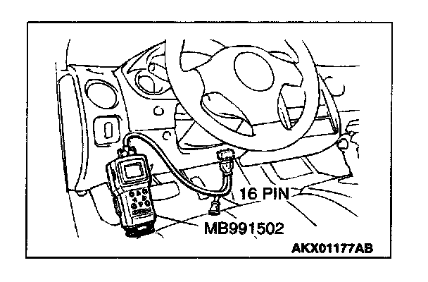 1. Connect scan tool MB991502 to the data link connector.