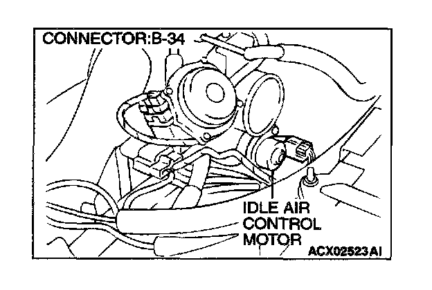 2. Check the operation sound of the IAC motor can be heard after the ignition is switched to the "ON" position (but without starting the engine).