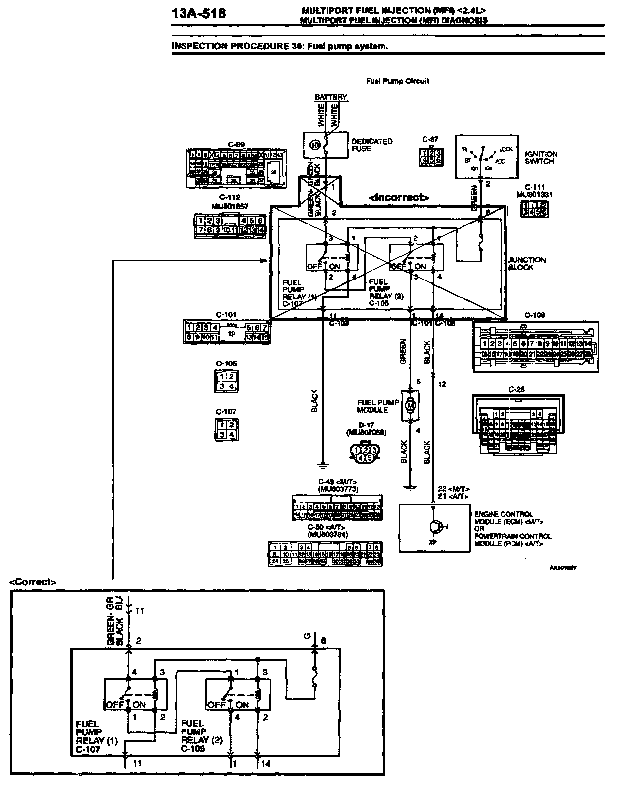 Correct the fuel pump portion of the wiring diagram as shown.