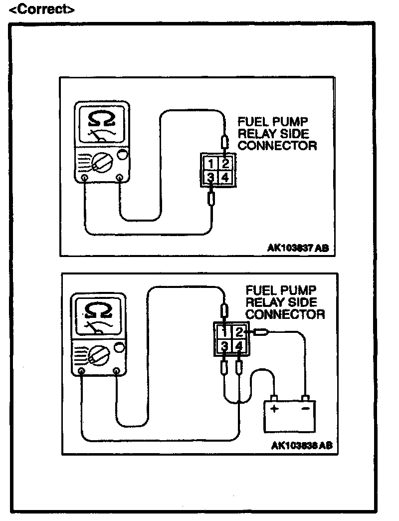 Correct the fuel pump relay terminal numbers as shown.
