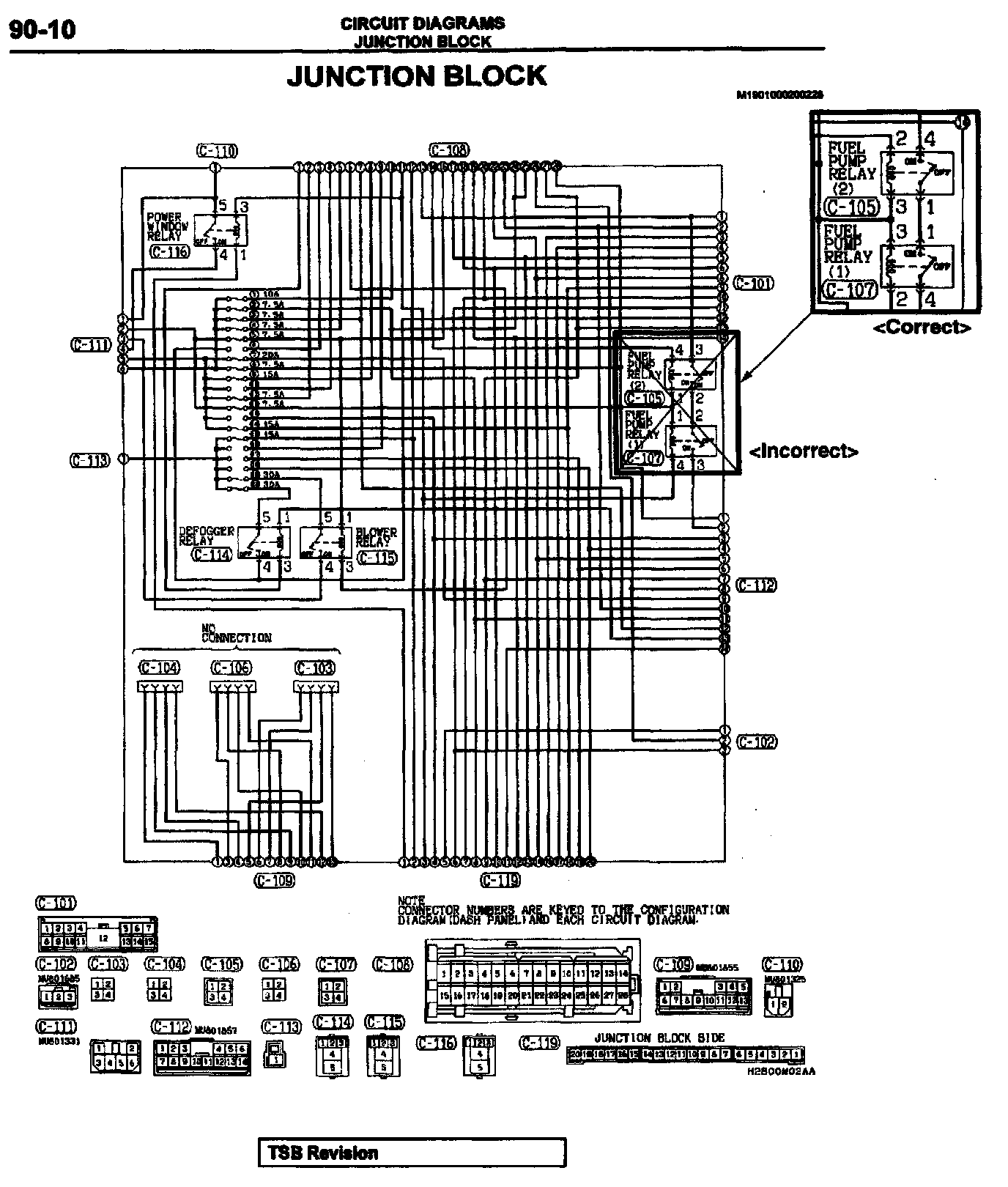 This bulletin corrects fuel pump relay terminal numbers, revises fuel pump relay Wiring diagrams, and adds important cautions.