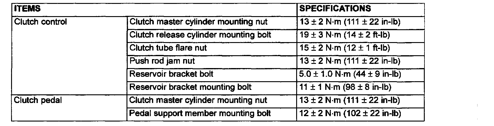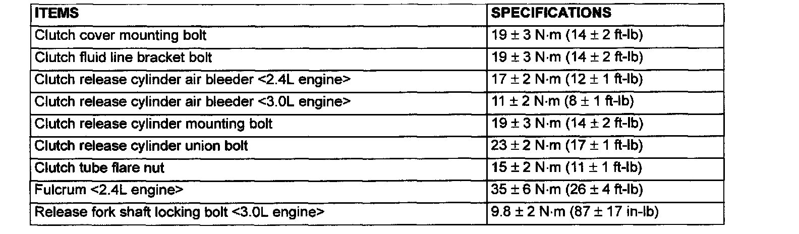 FASTENER TIGHTENING SPECIFICATIONS