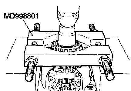 1. Using special tool MD998801, support the taper roller bearing, and then set them on the press.
