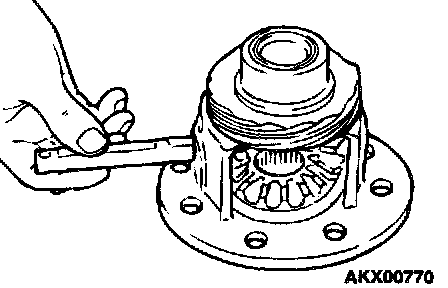 1. After a spacer has been mounted on the back surface of the side gear, install the side gear in the differential case.