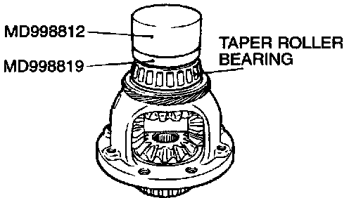Using special tools MD998812 and MD998819, press install the taper roller bearing.