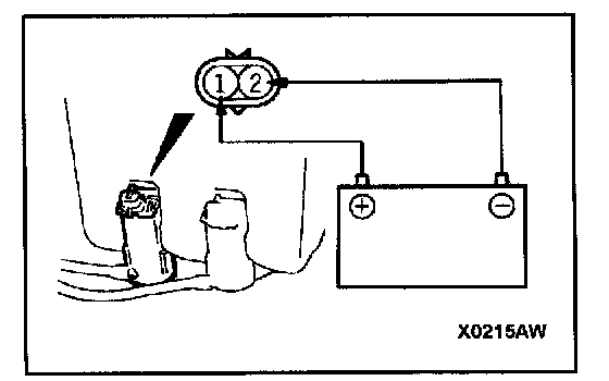 When the battery is connected as shown in the figure, check that the washer squirts out strongly.