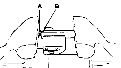 3. Use a press or vise to gently compress the auto-tensioner pushrod until pin hole A of the pushrod and pin hole B of the tensioner cylinder are aligned.