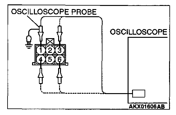 2. Connect the oscilloscope probe to the idle air control motor connector terminal 1, terminal 3, terminal 4 and terminal 6, respectively.