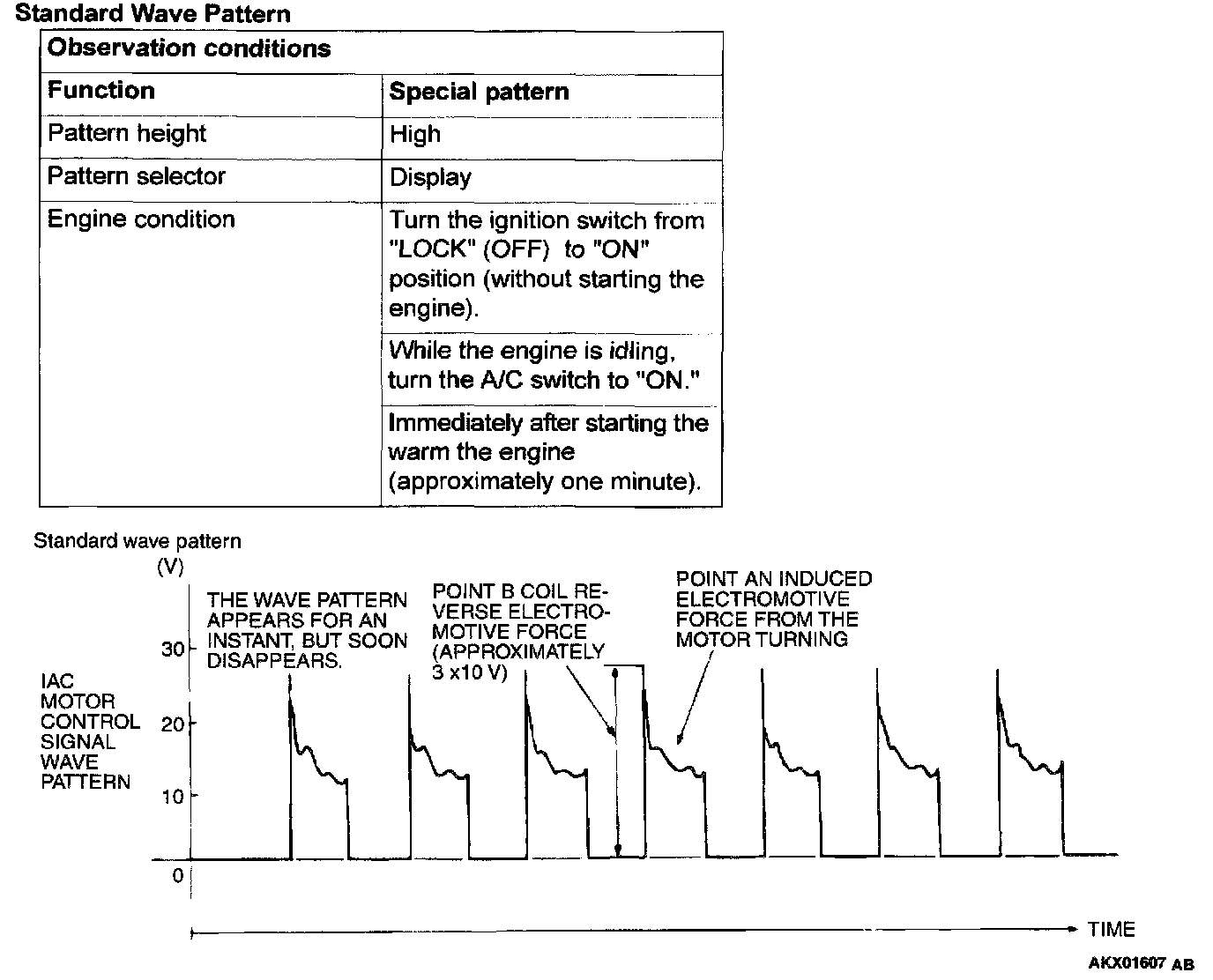 Check that the standard wave pattern appears when the idle air control motor is operating.
