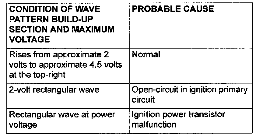 Point: Condition of wave pattern build-up section and maximum voltage (Refer to abnormal wave pattern examples 1 and 2.