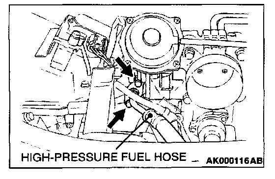 2. Disconnect the high-pressure fuel hose at the fuel rail side.
