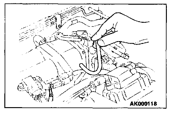 1. Remove the union joint and bolt from special tool MD998709 (adaptor hose) and instead attach special tool MD998742 (hose adaptor) to the adaptor hose.