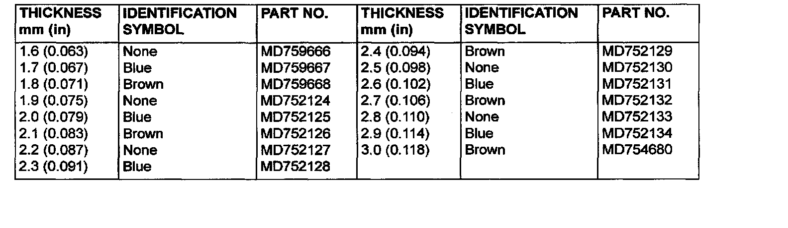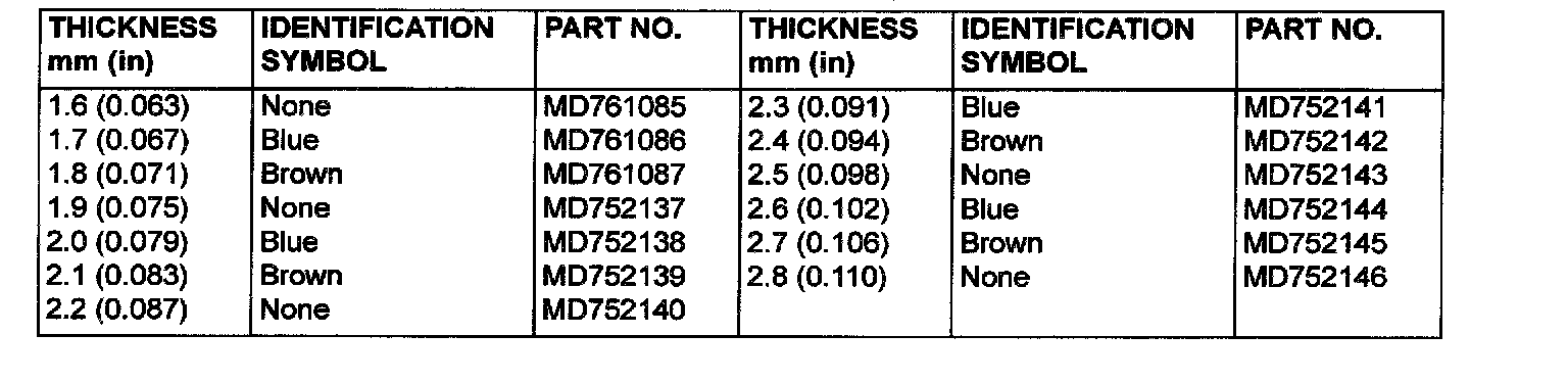 VALVE BODY SPRING IDENTIFICATION TABLE