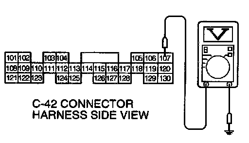STEP 3. Check the solenoid valve output voltage at PCM connector C-42 by backprobing.