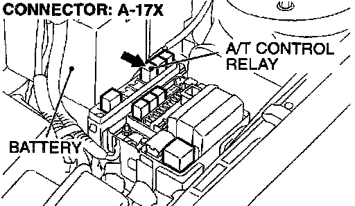 STEP 6. Check connector A-17X at A/T control relay for damage.