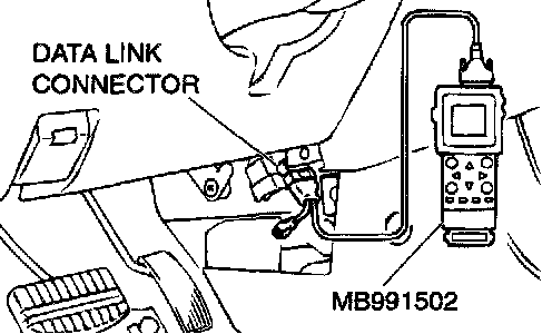 1. Connect scan tool MB991502 to the data link connector.