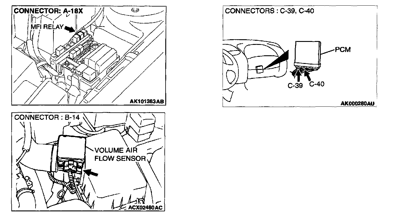 YES: Repair harness wire between MFI relay connector A- 18X terminal 4 and volume air flow sensor connector B-14 terminal 4 because of harness damage. Then go to Step 13.